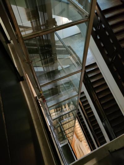 駅の真ん前で立地は最高! エレベーターがユニークで、いかにもヨーロッパという感じ