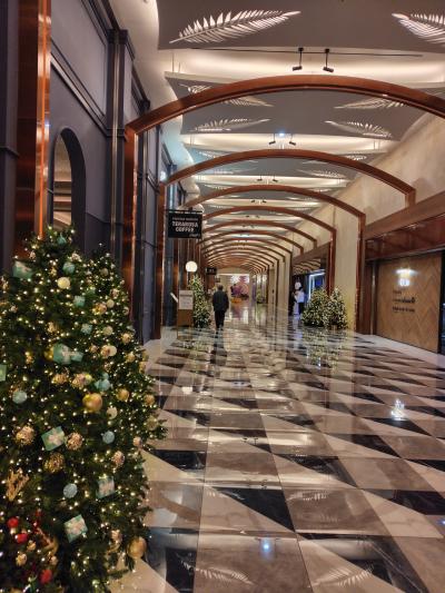 6日目ゆっくり起きて、カジノに入る前にロタンダのクリスマス デコレーシ...