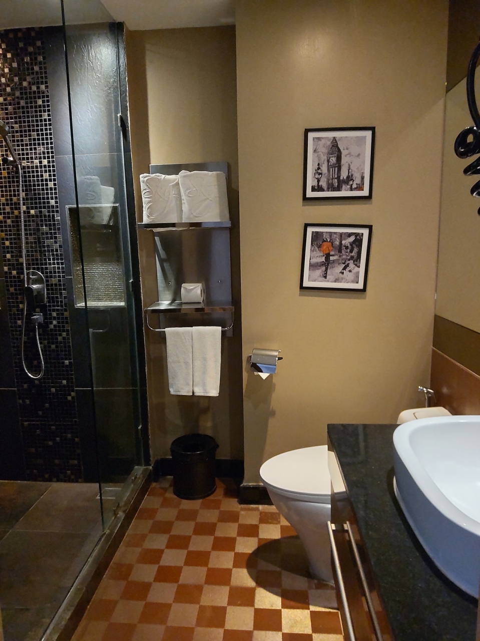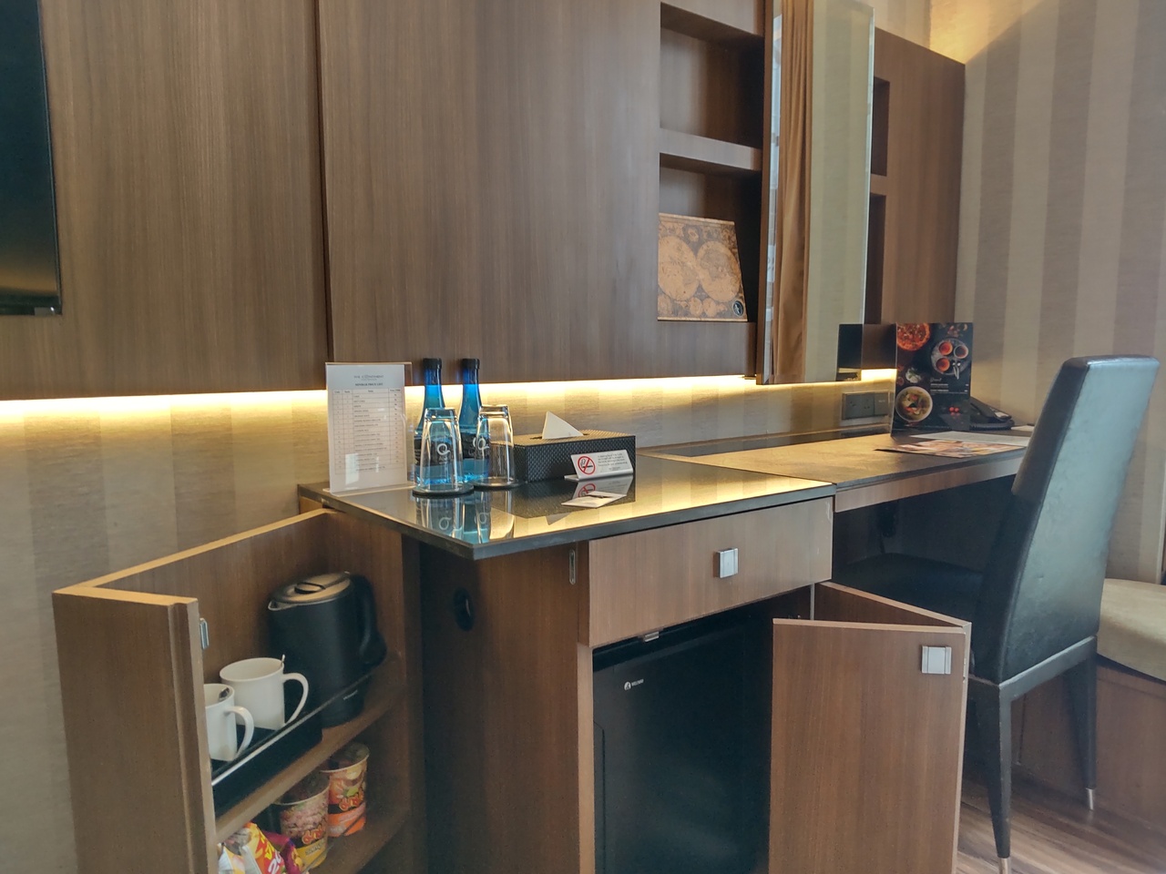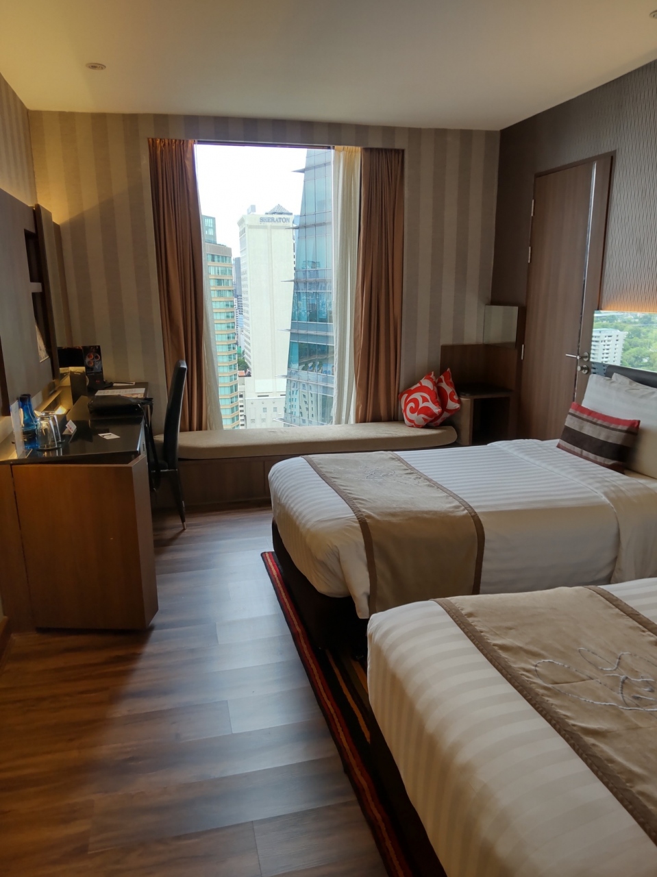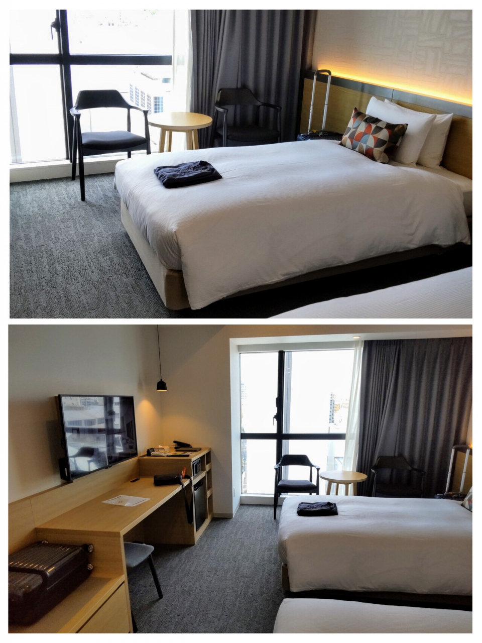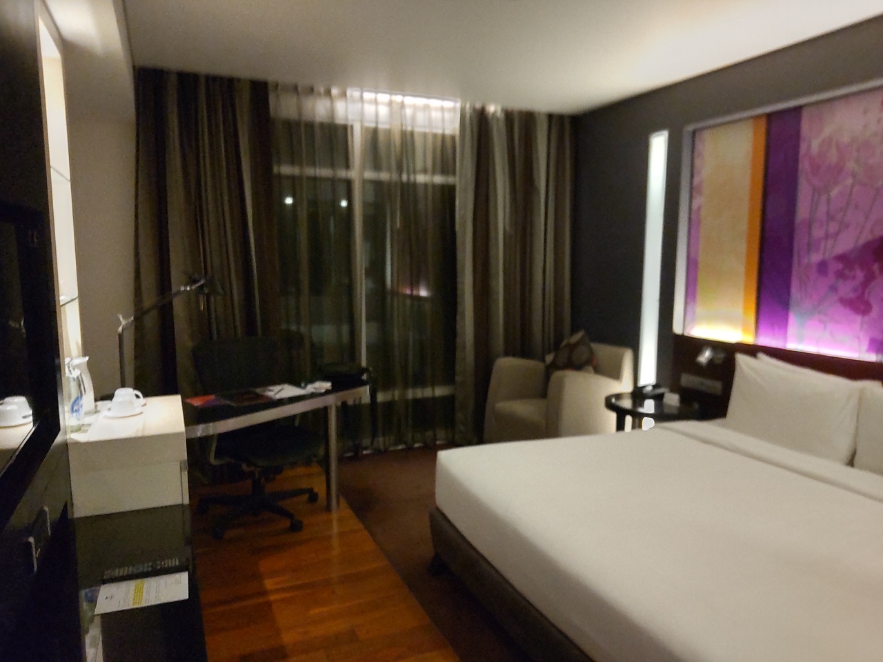 狭い敷地にペンシルの様な高い建物ですので客室は広くはありませんが、「スカイラウンジ(高層階)」の部屋にはアーリーチェックイン、レイトチェックアウト、夕方35階のラウンジ使用、毎日2点のランドリーサービスが付いていて、便利に利用させていただきました。