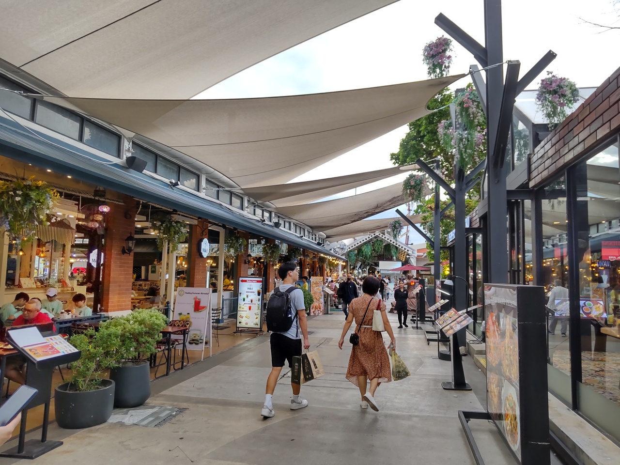 スコールになりそうなのか、店員たちがたくさんのテントを組み立てて、手際良く設置してくれました。