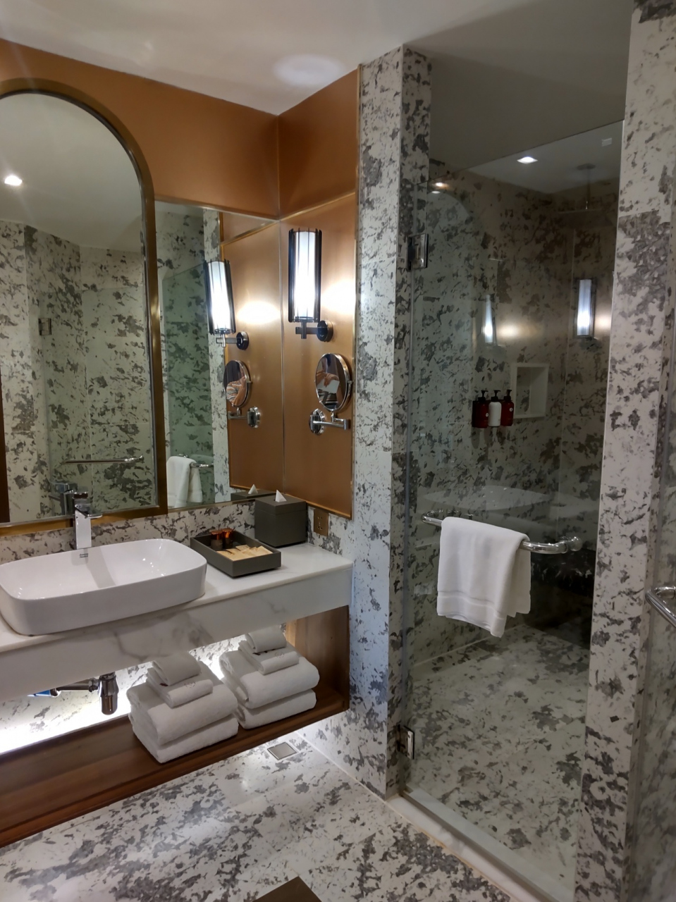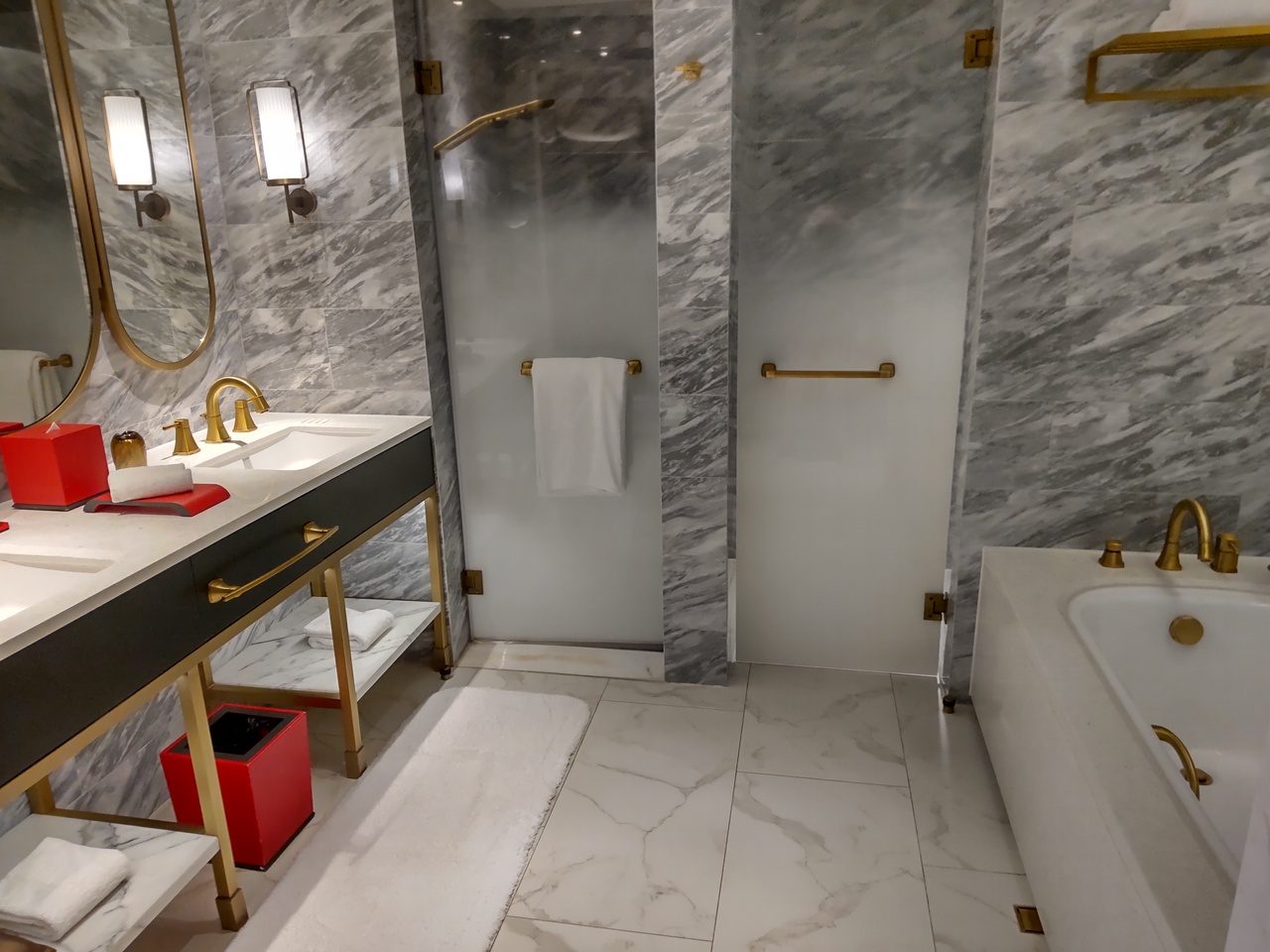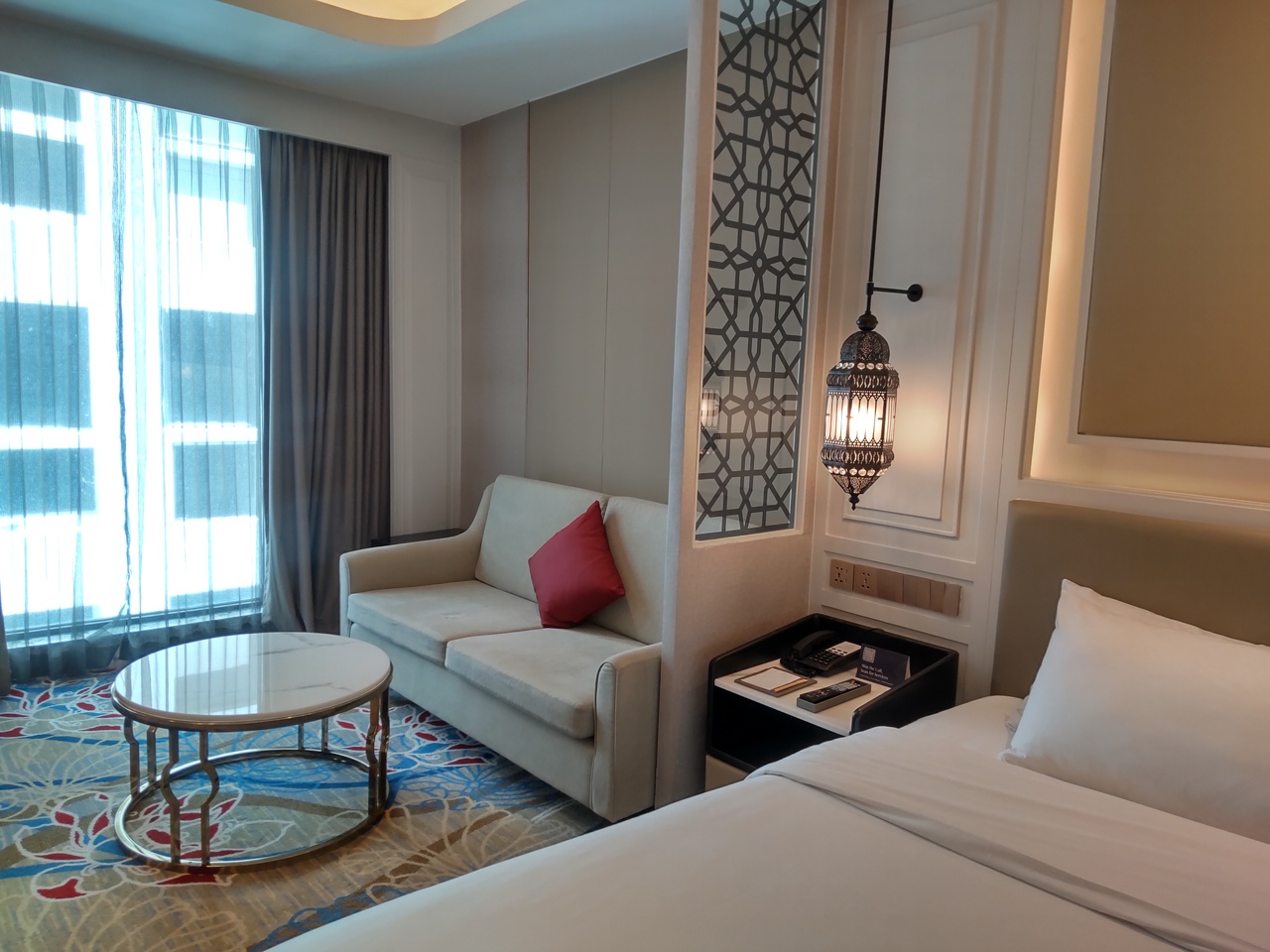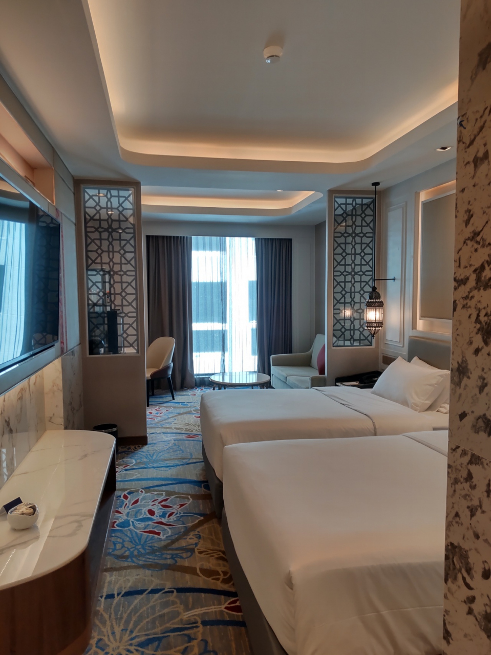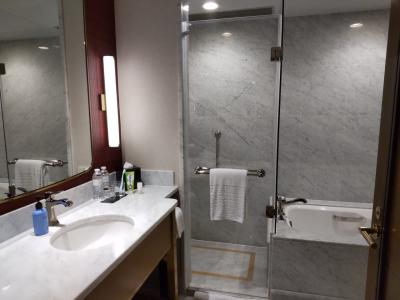 デラックスツイン ラウンジアクセス付の部屋に泊まりました。客室は広くて豪華でした。ただ、高層階だったせいかバスタブの湯圧が低くて、なかなか湯が溜まりませんでした。