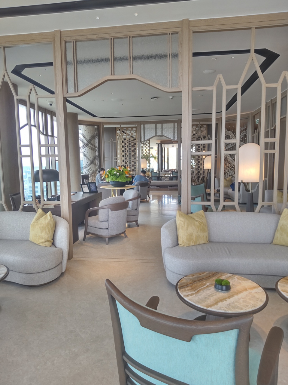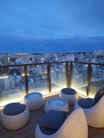レセプションは最上階の17階にあり、アメニティはそこで自分で選べます。並びが景色の良いラウンジになっていてドリンクやアイスクリームも注文できます。テラス席もあり夜景が楽しめます。