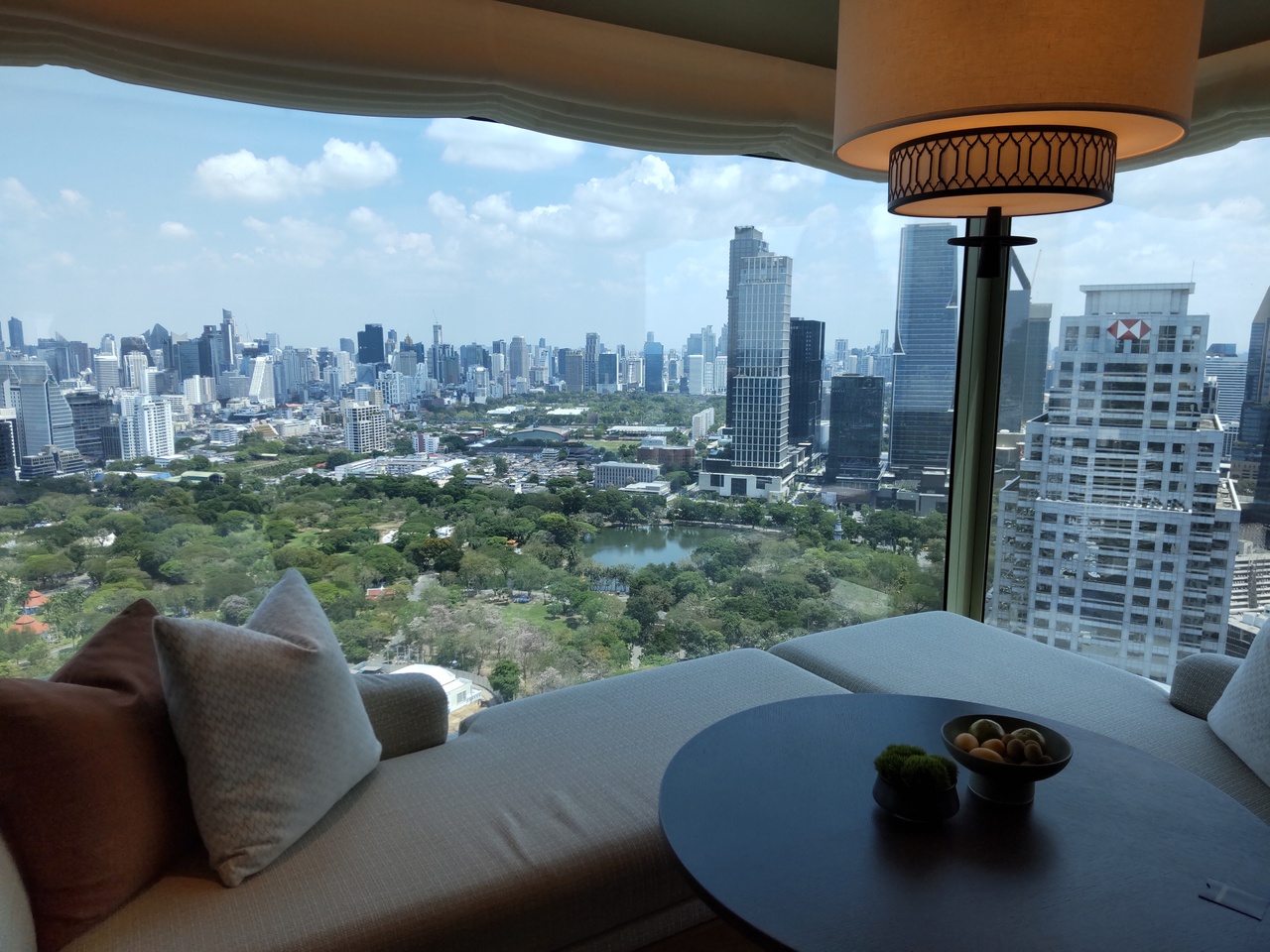 ホテルに入ると直ぐに39階のラウンジに案内され、ルンピニ公園を見おろしながらチェックイン。最初から感動です!!