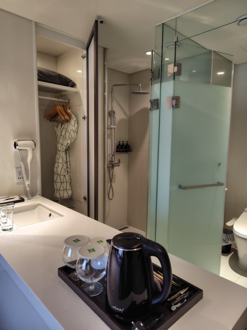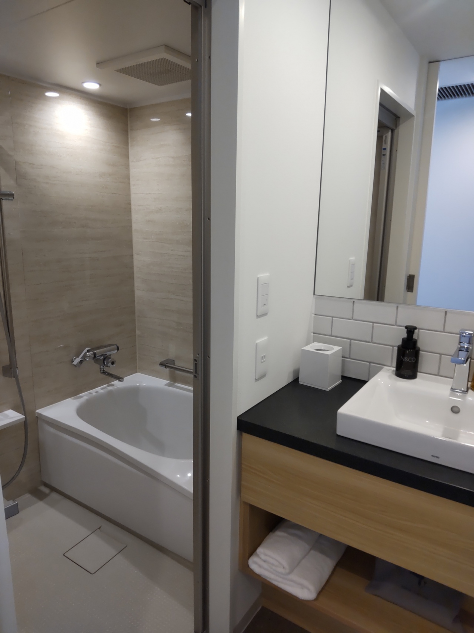 照明も読書灯は無く、左右別々にコントロールできません。ベッドは2つあっても、2人で泊まるには、トランジットの1泊くらいかな?と言ったところです。
