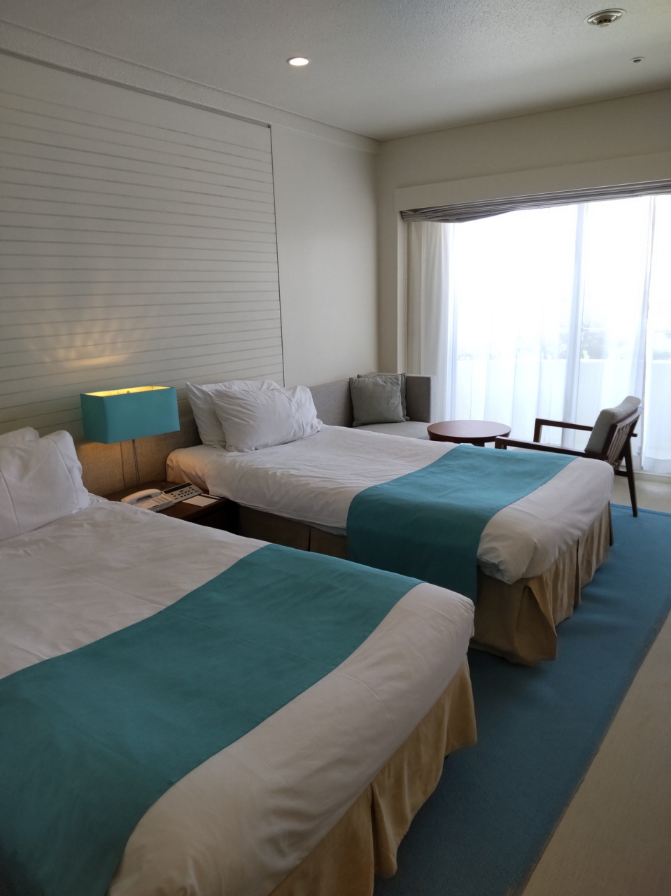 立地は最高。国際通り中程に面しています。エントランスもロビーラウンジも綺麗で快適ですが、、、建て増しに次ぐ建て増しなのか、エレベーターホールからくねくねと長い廊下を進んだ先のお部屋でした。