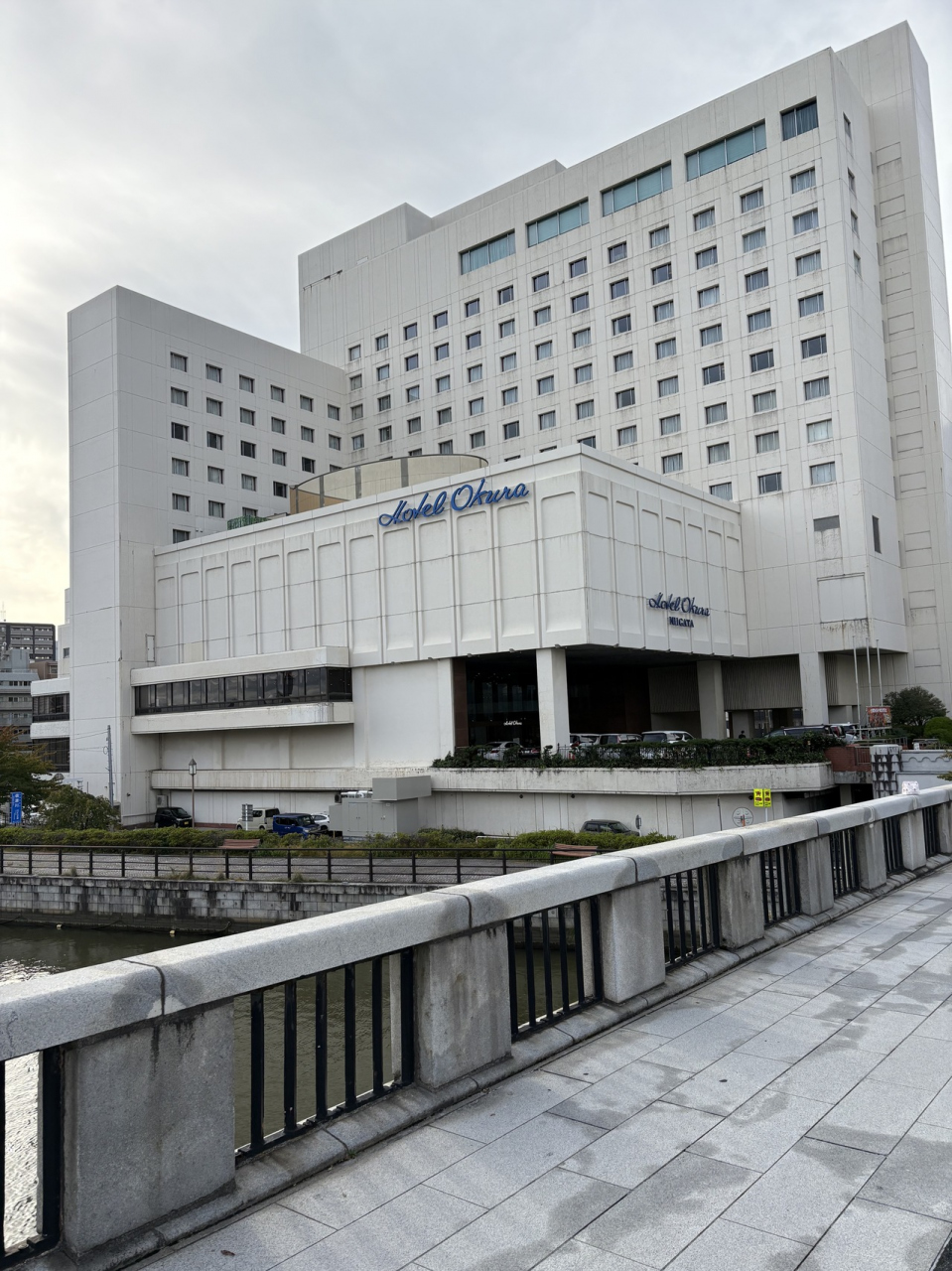 萬代橋の麓、信濃川沿いに広い敷地を持っているホテルです。川岸は桜並木になっており、春にはさぞかし美しい眺めでしょう。