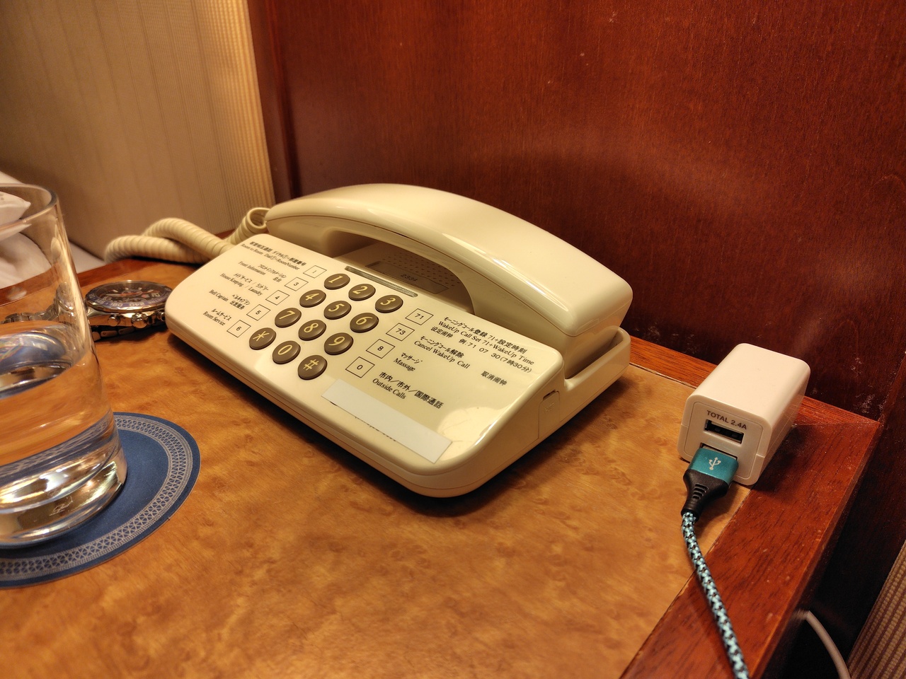 コンセントが無い。部屋の隅の下の方、掃除機用のコンセントだけです。あとは机の下に潜り込むと、延長コードの差し込み口があるだけ。かろうじてベッドサイドテーブルに、後付のUSB端子の差し込み口があリました。室温を調節できるエアコンも無く、ただ「H,AUTO,L,OFF」のスイッチのみ。何しろ、設備が昭和のままでした。