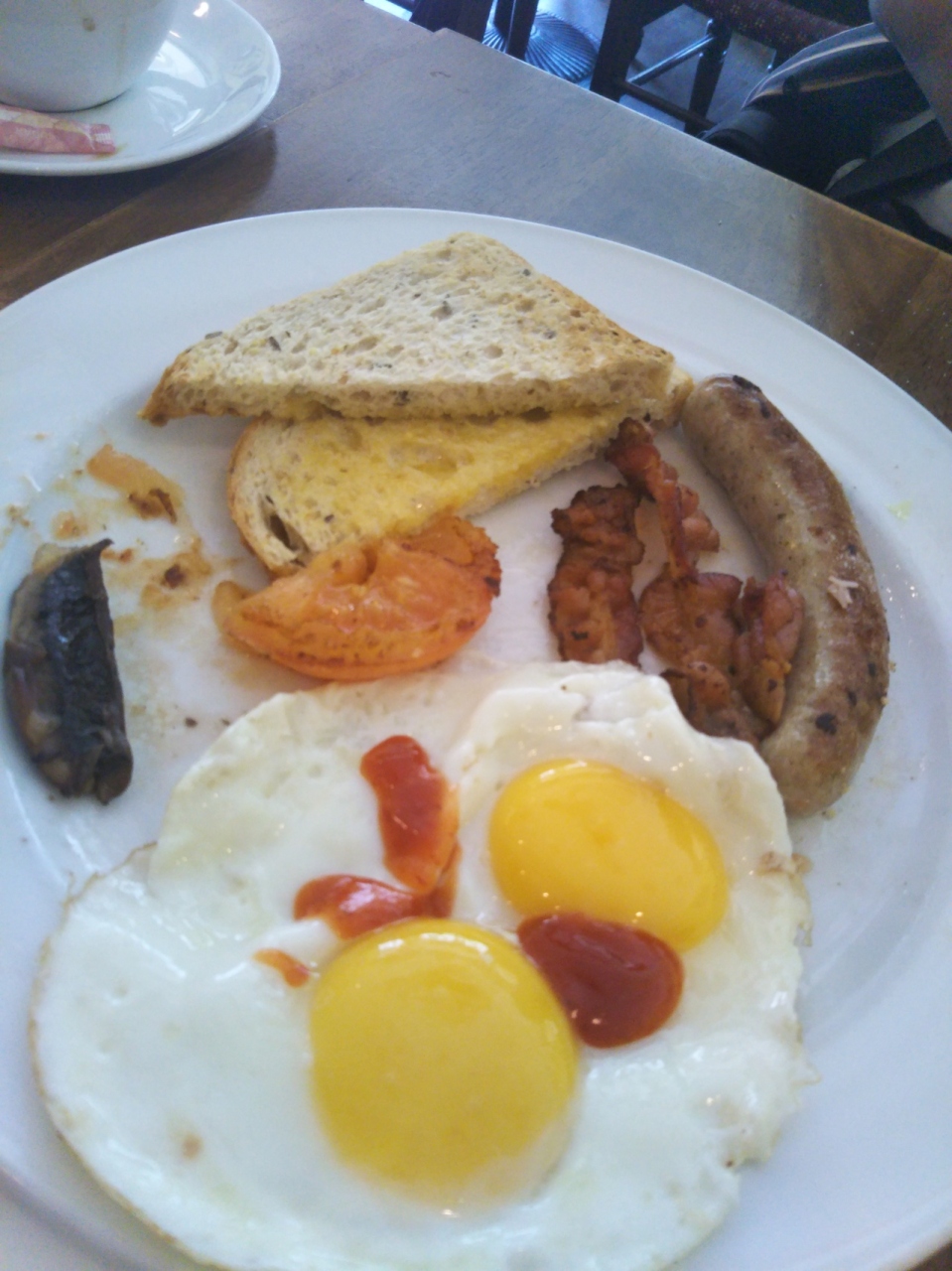 モーニングセットとサンドイッチ(コーヒー付き)で32ドル。ちょっとお高めでしたが、ソーセージとパンがすごく美味しかったです。- 旅行時期