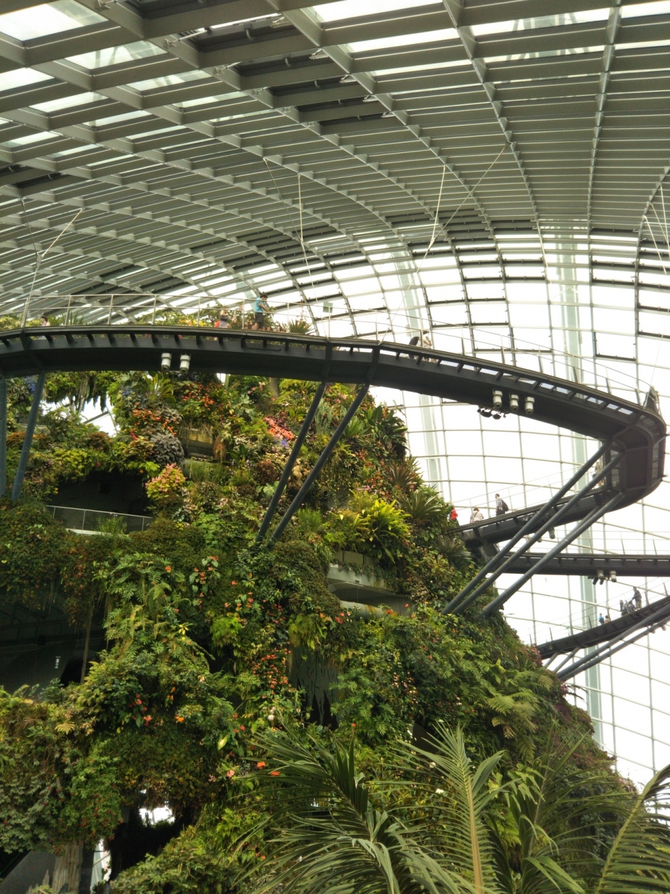 クラウドガーデンは、入ってすぐに大きな滝に圧倒され、エレベーターで一番上まで上がり、降りながら全ての区域を見られます。高所恐怖症の人はちょっと大変かな?