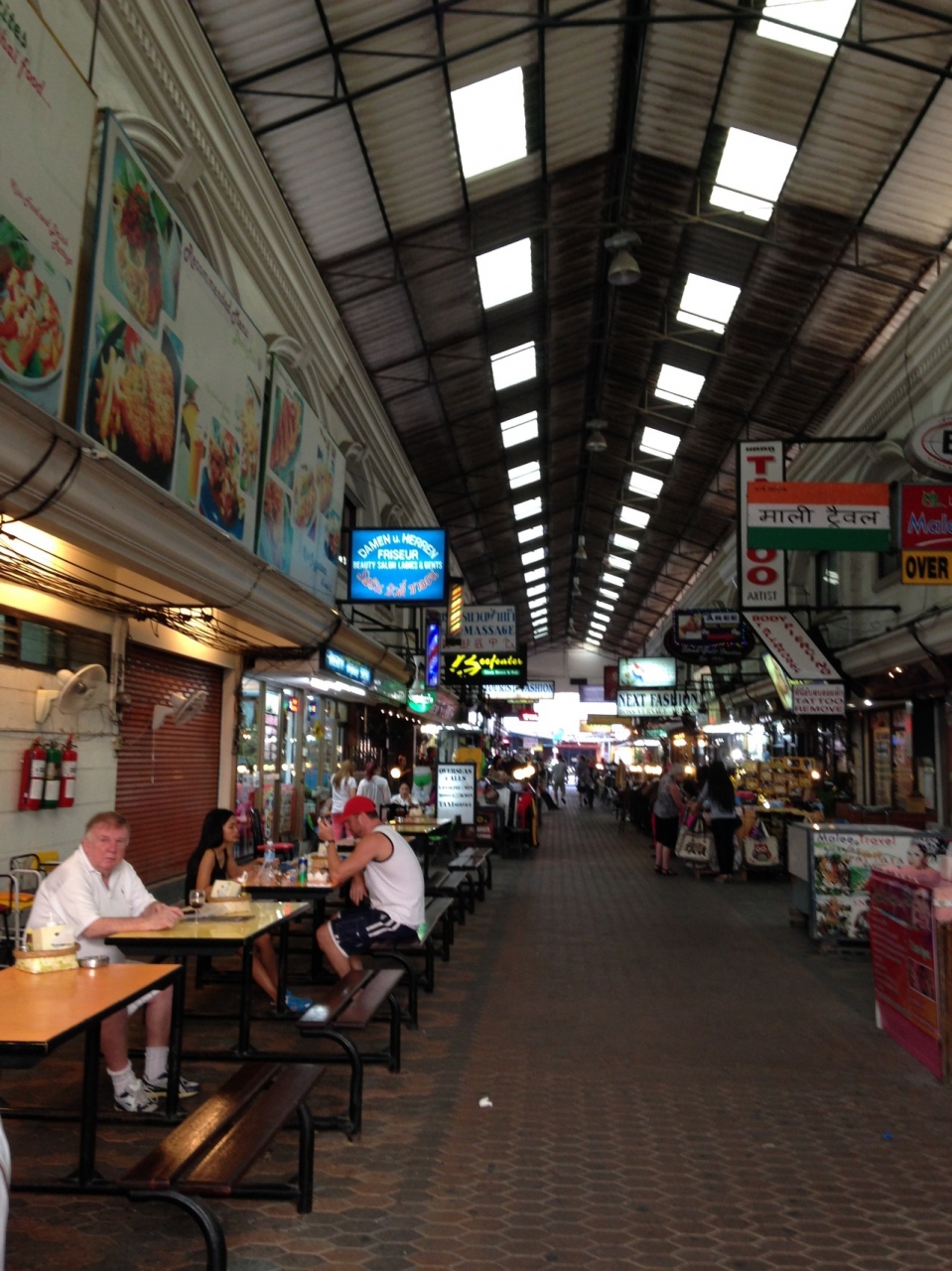 このレストランの並びの店はソイに挟まれていて、みんな両側に入口があります。アーケード側にはテラス席もあり、こちら側からの方が店の様子も分かり、入りやすいかも、、。