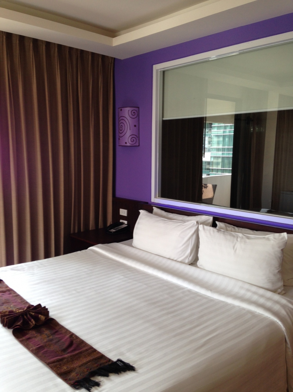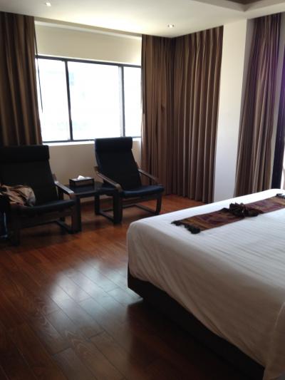 フロントの日本語片言を話すお兄さんに「1泊500バーツ上乗せでコーナースイートの部屋にしませんか?」と言われ、部屋を見て、(今回の旅はずっと粗末なホテルだったので)「最後の4泊くらい、まあいいか。」と変更しました。