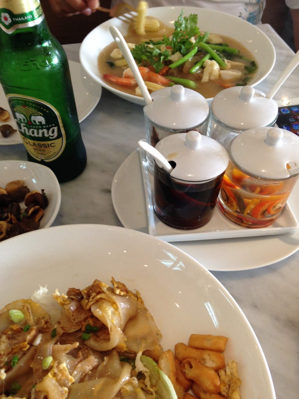 タイ料理に少々飽きてきた私たちは、ブランチにクラブサンドイッチとシュリンプサラダ、水1本をシェアして、200バーツでした。