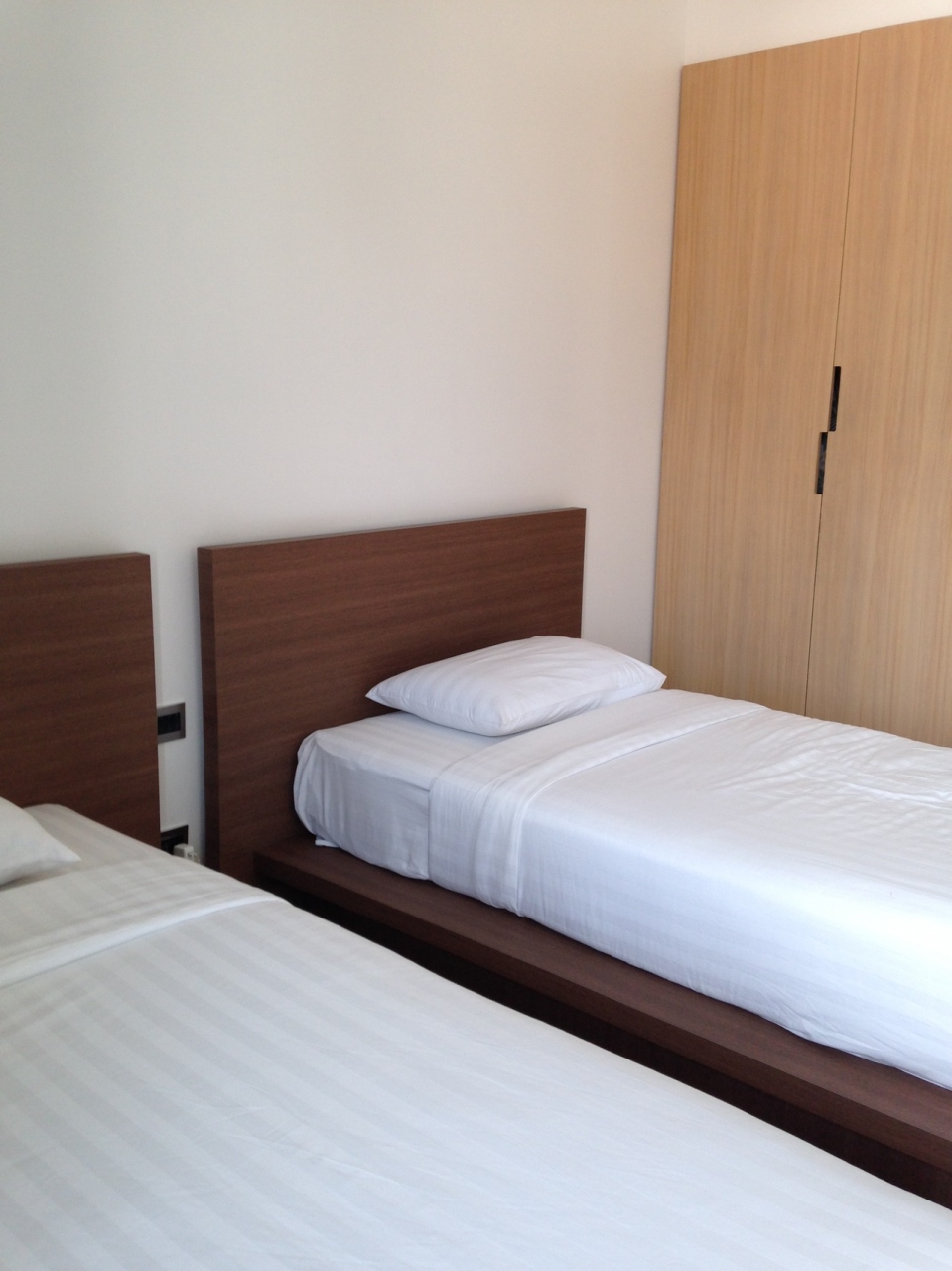 ただ、クローゼットのドアを開けるとベッドサイドから出られなくなってしまう、とか、せっかくコンセントがあるのにベッドサイドテーブルが足りない(バルコニーのテーブルを運んできて使っちゃいました。)とか、家具の配置など気配りがこなれてないところが惜しいです。