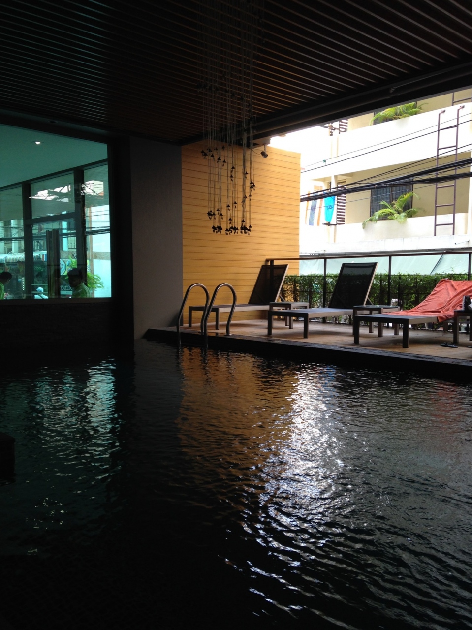 フロントでビーチ用のタオルを借りられます。プールはロビーフロアの隣、小さなオープンエアーの室内プールでした。ビーチ帰りの塩抜きに入りましたが、消毒の塩素がキツかった!