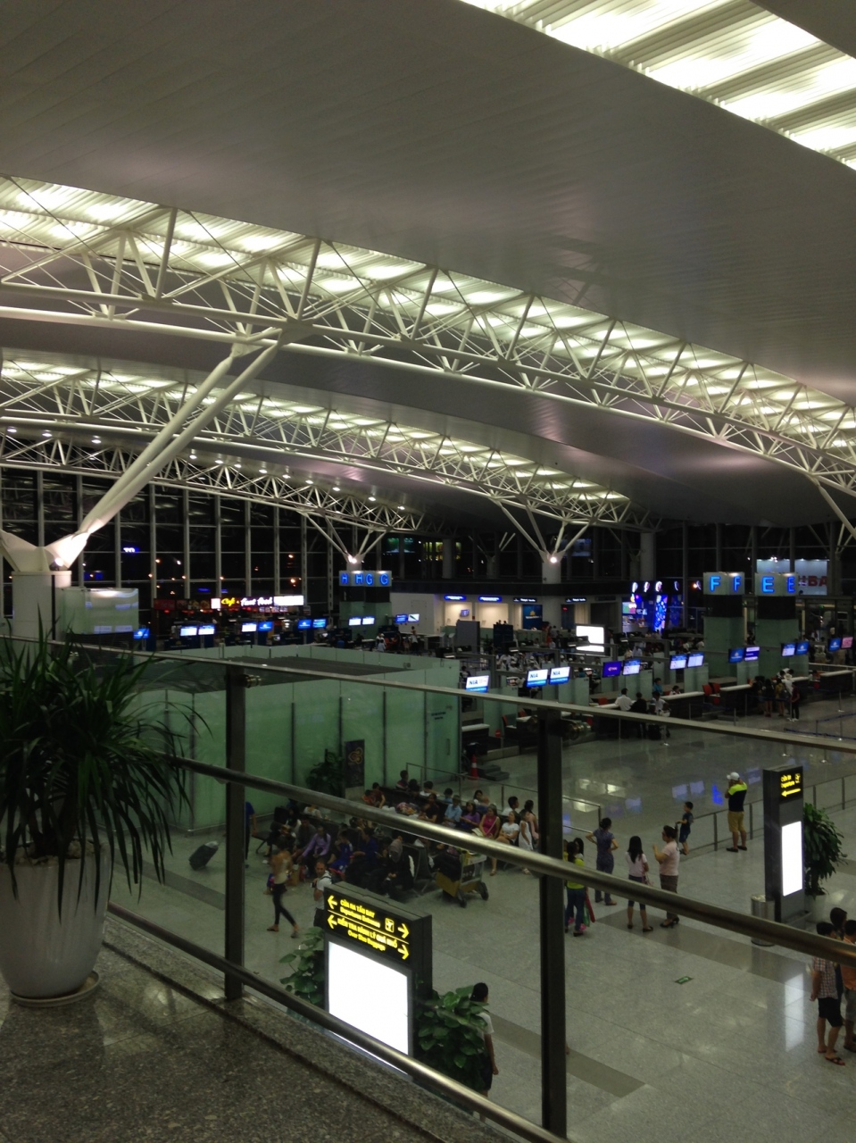 日本からの円借款で、日本の建設会社が建てた国際線ターミナルです。まだ新しいので、非常に綺麗です。
