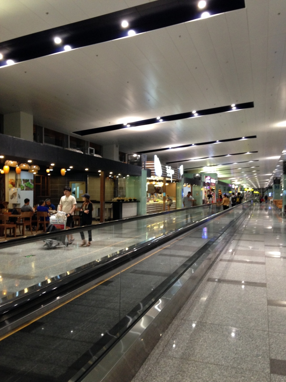 往路は、飛行機を降りると通路に「右はアライバル、左はトランジット」と分かりやすく表記してあり、トランジットに進むと手荷物のx線検査を経て、出発ゲートに上ります。