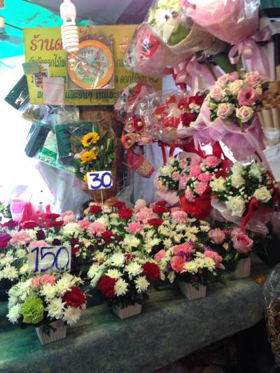 市場から道路を挟んで北側に花屋さんがたくさんあり、アレンジした花束など、生花造花取り混ぜてたくさん見られました。