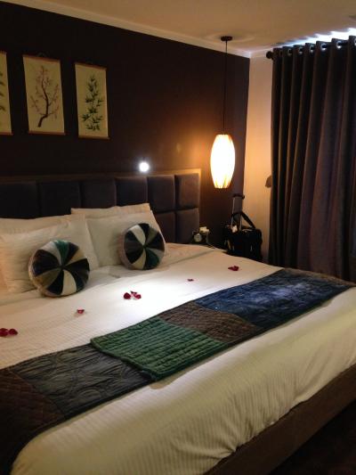 ジュニアスイートなので広くて、家具も素敵でした。ツインベッド希望なのに二つのベッドがくっついているのを見て、彼が「直ぐに離します。」と言うのを、私たちは「ノープロブレム!」