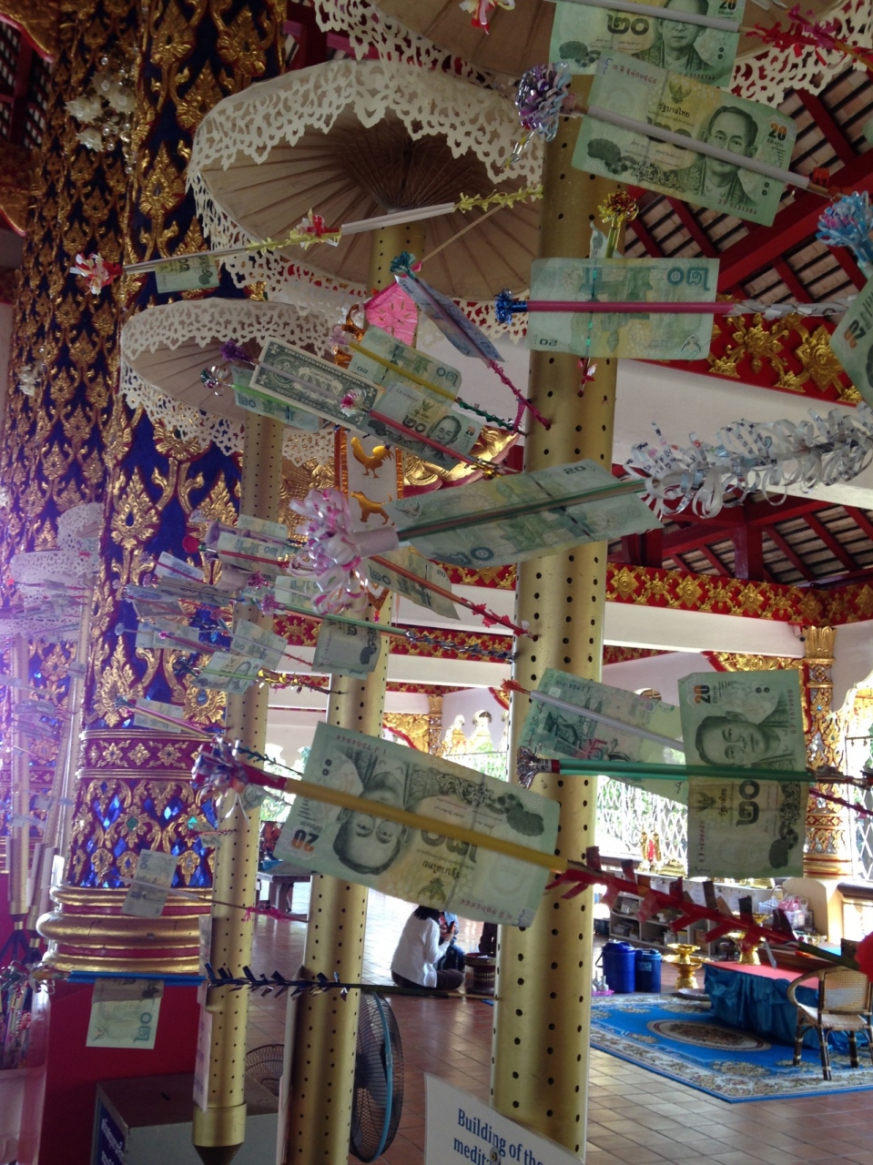 面白かったのは、お布施用のポールがたくさん立っていて、それぞれ、寺院の修復、電気水道代、、僧侶の食費、教育費、、、などに分かれています。私も、竹ヒゴに紙幣を挟んでポールに刺してきました。- 旅行時期