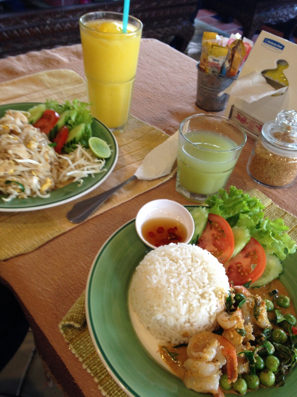 ブランチに、パッタイとシュリンプのパネーン ライス付きをいただきました。カフェとなっていますが、レストランと言ってもいいくらいのメニューの品揃えと味でした。