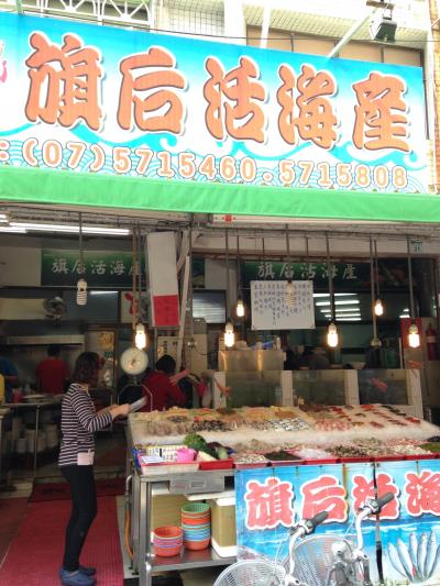 廟前路に戻り、「旗后活海産」で食事。ゆで海老(10匹)、ホタテの炒め物、ハマグリのスープ。朝食ビュッフェがこなれ切れていない私達はこれで満足、502元。安い!!海鮮料理が食べたかったら、是非旗津まで足を伸ばして下さい。- 旅行時期