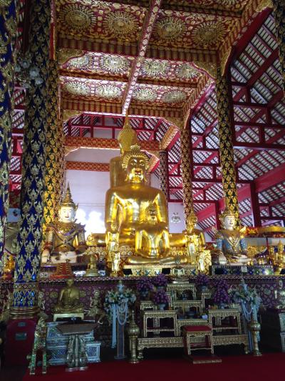 遠くからも、たくさんの白い仏塔の間に一際目立つ黄金の仏塔が目を引きます。観光客は少なく、落ち着いて見て回れました。