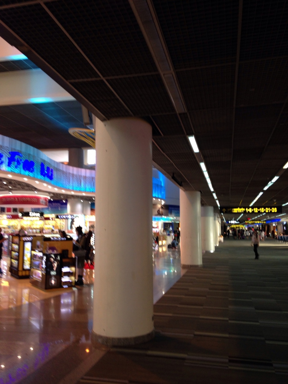 通路が青と赤に色分けしてあって、出発は青でチェックインカウンターからイミグレまで、到着は赤でバゲージクレームから出口まで、迷わない様に誘導してあるし、使いやすいです。