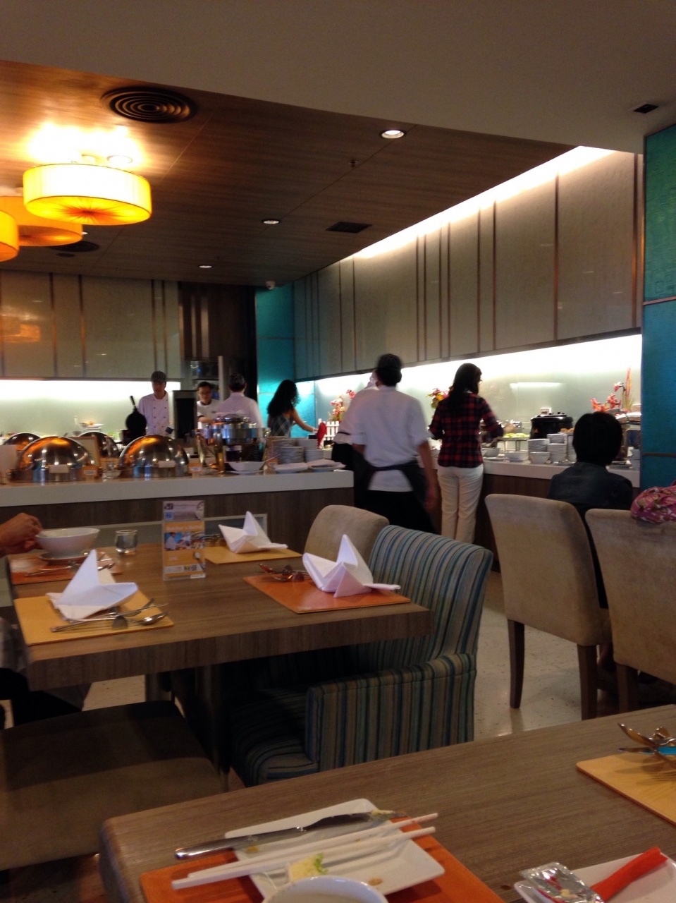 朝食のビュッフェは、洋風、中華風が一通りあり、麺類はその場で作ってくれます。品揃え、味はまあまあといったところ、、。