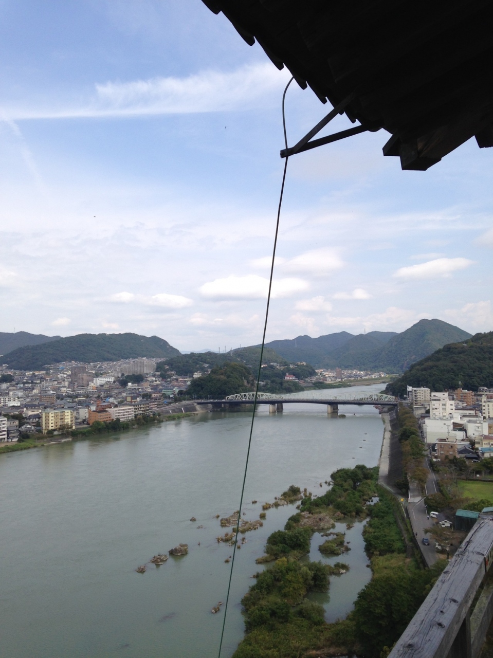 天守閣最上階からの眺めは最高です。外縁を右回りに(狭くて、すれ違いは危険ですから)一周できますが、手摺も低いので高所恐怖症の方は要注意。(笑)