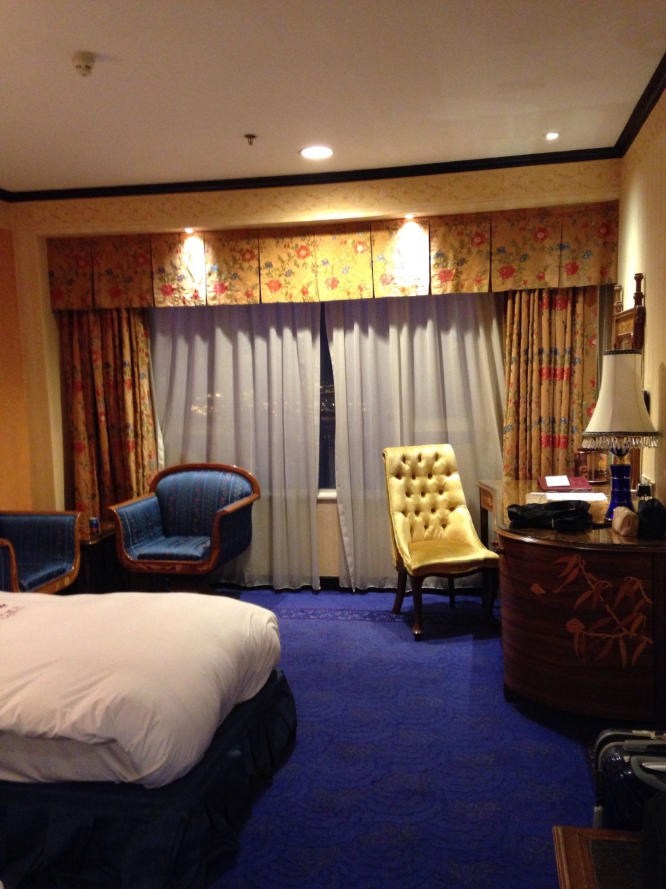 部屋は昔ながらの円柱型の建物(東ウィング)ではなく、西のタワーの15階でした。古いけど、ちゃんとメンテナンスされていて、中華系のインテリアで凝った感じです。