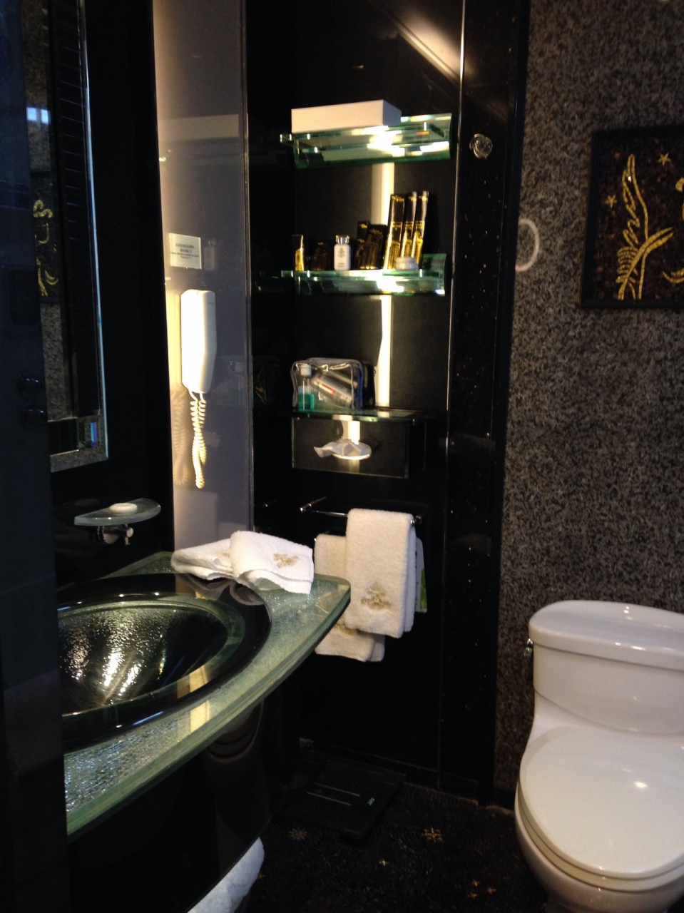 バスタブは自動的にシャグジーとなり、スチームやフットマッサージ器、側面からのジェットシャワーもありましたが、3泊では全てを使いこなす前にタイムアウト!タオル、バスローブ、スリッパも厚くて立派。