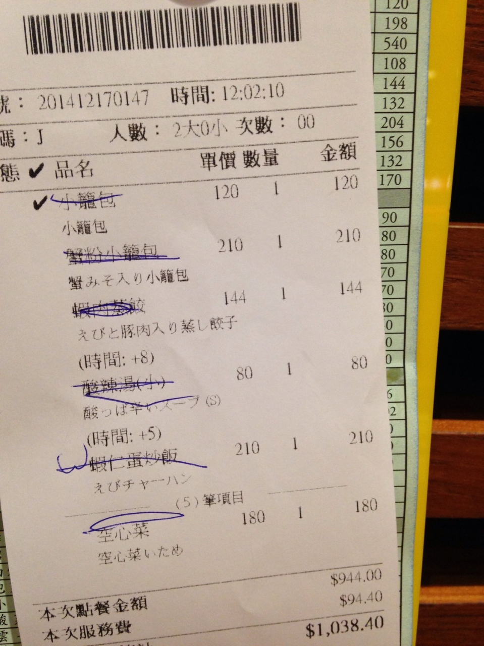 超有名店なので本店は混んでいるだろうとSOGO復興館の支店に来ましたが、11:30で30分待ちでした。その間に注文票を書き込んでいたので、それ程苦にはなりませんでした。