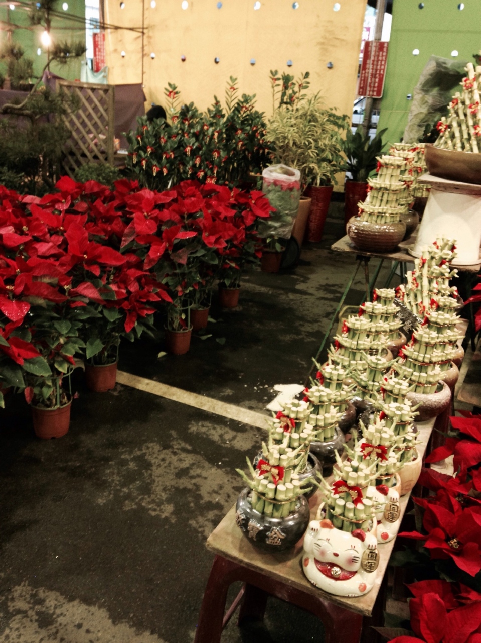 季節がらポインセチアと、縁起物?の竹飾りが目につきました。沢山の蘭の花、観葉樹、多肉植物などは、やはり南の国ですね。切花は殆ど無く、もっぱら鉢植です。検疫があるから、お土産にはできませんけど。