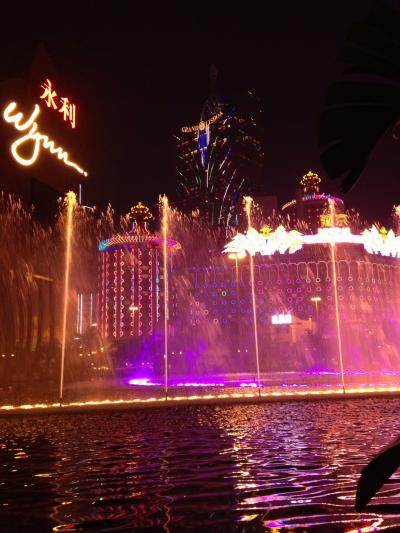 グランドリスボアと、道を挟んでリスボアもネオンがギラギラ。さらに地下道を通ってウィンの噴水は夜間15分毎に観られるので、夜のお散歩にどうぞ。- 旅行時期