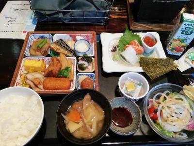 朝食は、お造り、サラダなどの生物の他にパックのおかずセットが出ましたが、これがちょっと雰囲気壊します。多分、コロナの影響でしょう。私などは、お造りのイクラだけでイクラ丼にしてご飯一杯食べられちゃいますけどね。