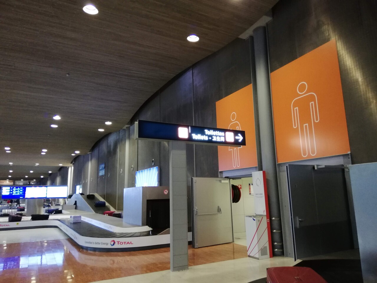 インテリアデザインとしては、木製の曲面の壁と間接照明が印象的でした。トイレの標示も、目立っていて、それでいて素敵!さすがフランスです。