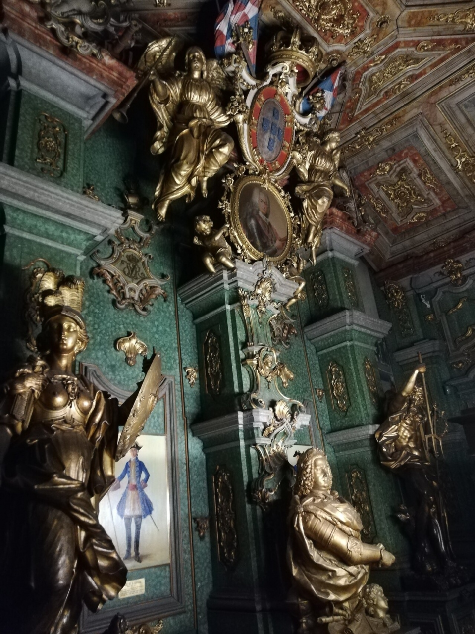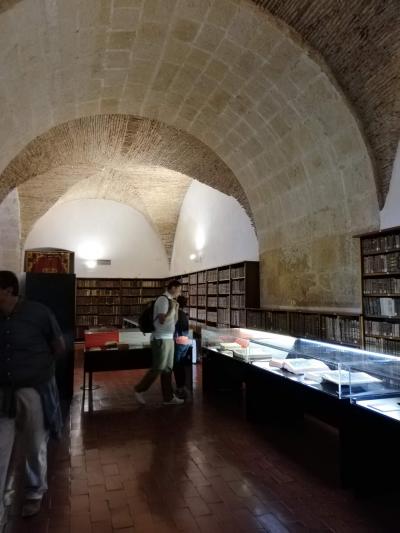 3階は宮殿風の作りの図書館になっていて、壁一面の書架に飴色の古い書物がびっしり並んでいました。柱は大理石に見えましたが、触ってみたら木製で、大理石の模様をペイントしてあるだけでした。