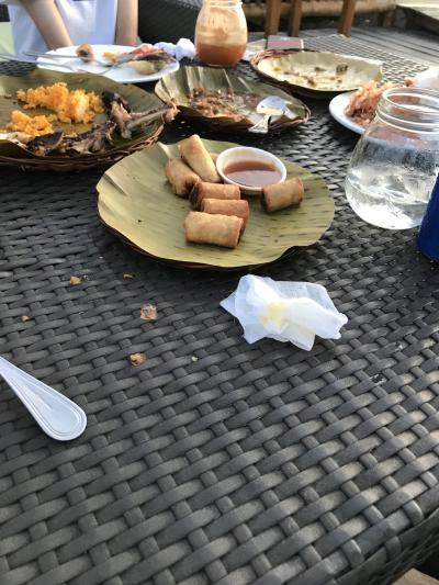 4.0マリバコグリルかこちらか迷ったのですがこちらを予約しました。チキンとレッドライスのとホタテのチーズ焼きガーリックシュリンプレモンビール 春巻き スイカスムージー...もっと見る