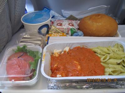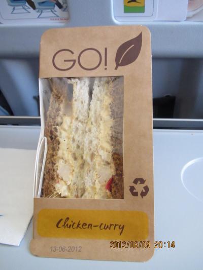機内ではサンドイッチが出ました。パンはパサパサだけど、味は美味しかった...