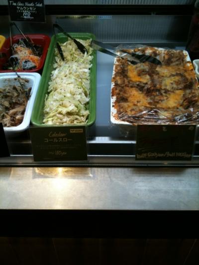 ランチは店の前のケースから好きなデリ2種を選べます(無印カフェと似てます)。