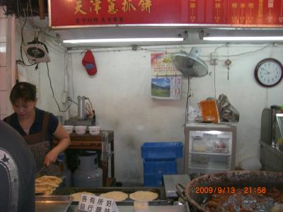 士林駅の前にこれと同じ小吃の店があり、故宮のガイジン観光客向けに「Taiwanese Pizza」と書いてありました。そのときは高菜入りを食べたのですが、卵入りにしたかったのに「蛋」をどう発音していいか分からなくて頼めず。。。