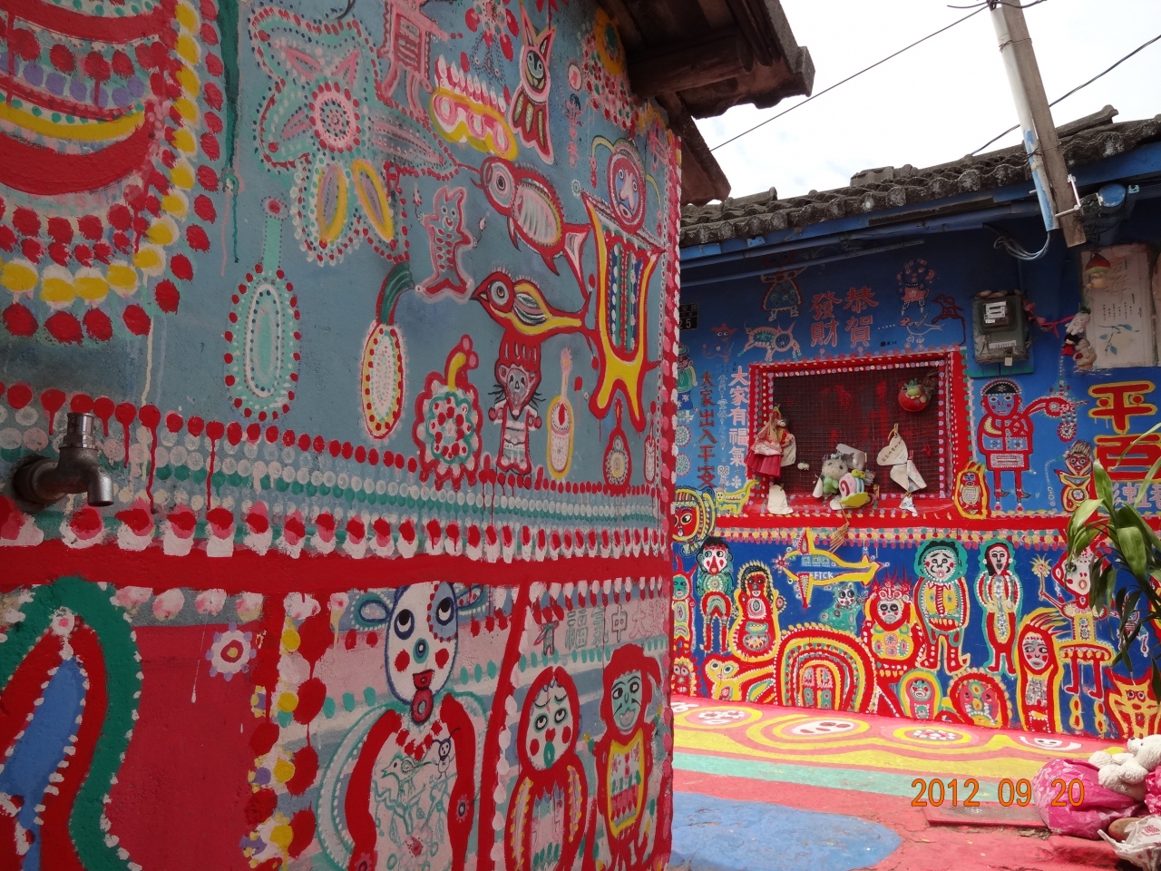 古い文化住宅のような平屋の団地で、再開発による取り壊しが決まっていたようなのですが、黄(フォン)おじいさんが自発的に我流のアートを壁や床に描き始めて話題になっています。