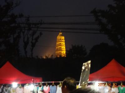 思いがけず、夜の虎丘はライトアップされていて非常に幻想的でした。
