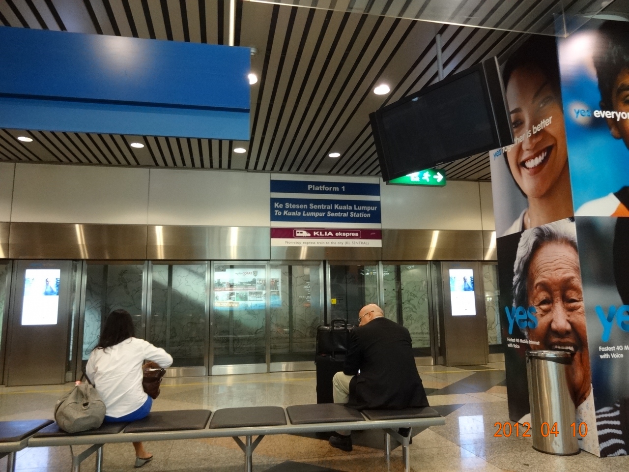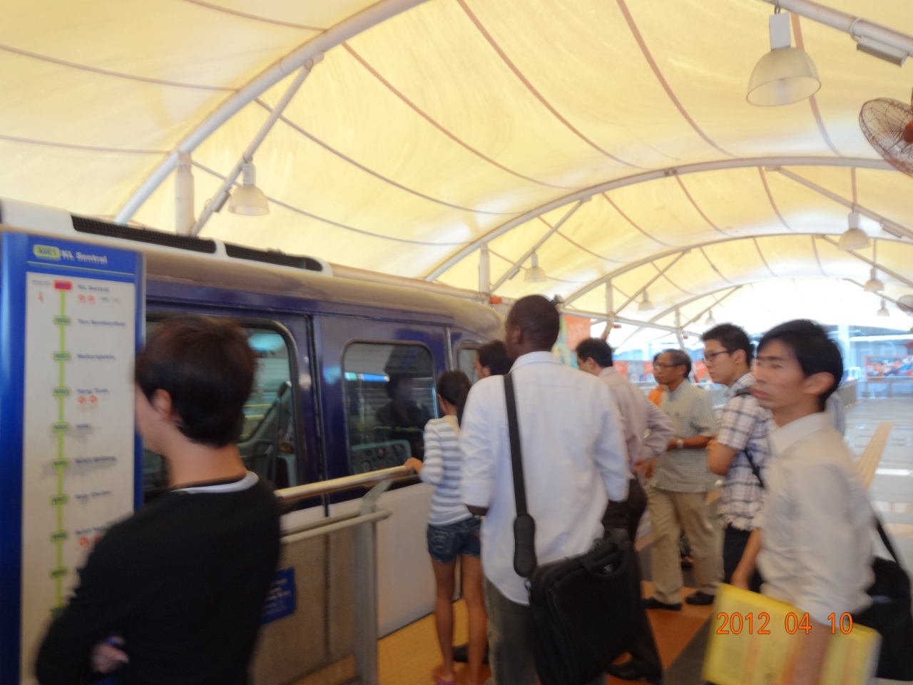 空港着いて電車に乗るまで、乗り場サインがあっても実際は改札閉まっていたりで右往左往しました。この後何度もやられましたが、とにかくKLの人は意地悪に近い不親切で、駅員に聞いても閉まっている改札指してあっちいけとか言うので本当にストレス溜まりました。