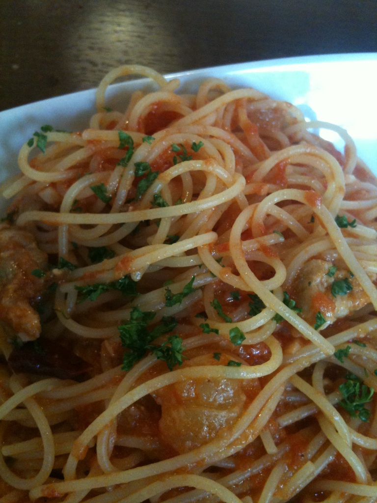 味は普通、かな。茹で具合の問題なのかそもそも乾麺自体が不味いのか良く分かりませんが、パスタの乾麺自体が余り私の好みではありませんでした。