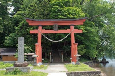 遊覧船は湖の中にある琵琶島に15分ほど停泊し、島内の宇賀神社にお参りで...