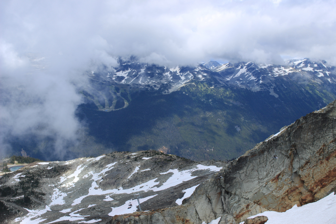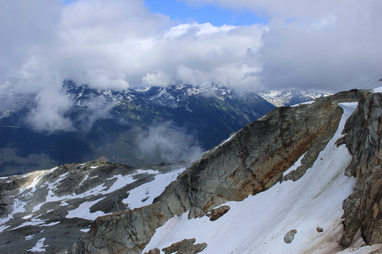 PEAK2PEAK、Peak Chairなどのゴンドラを乗り継いで、ウィスラー山の頂上まで行きました。ウィスラー山の頂上まで行くと、雪があり、夏でも肌寒いです。でも、頂上からの景色は絶景なので、是非頂上まで行くことをおすすめします。