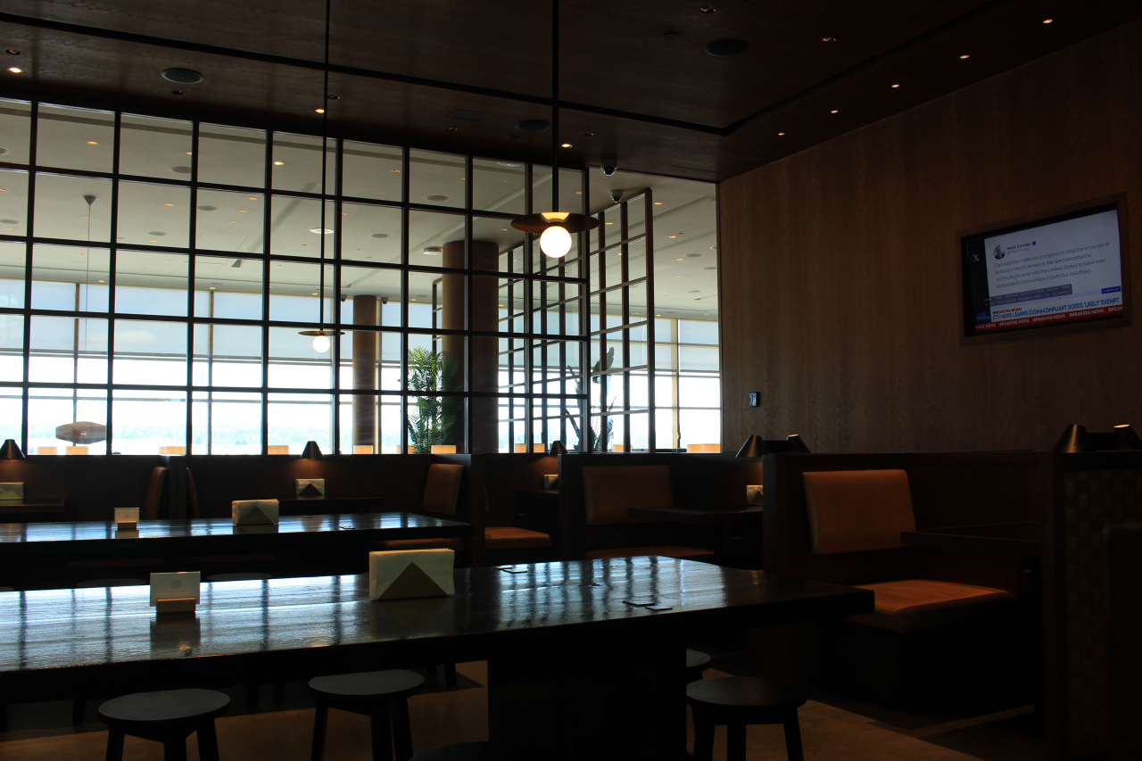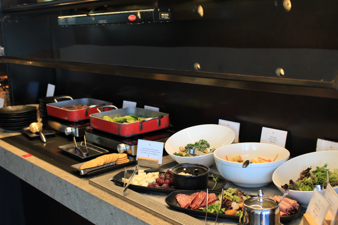 レストランスペースのようなところでは、飲茶やヌードルの注文ができて、とても美味しかったです。ソファのある休憩スペースでは、サラダやチーズ、その他総菜系が食べられ、デザートなどもありました。- 旅行時期