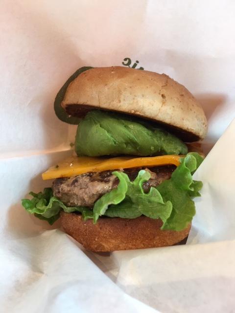 ヘルシーなハンバーガーが食べられます。糖質が気になる人は、プラス料金で低糖質バンズに変更可能です。