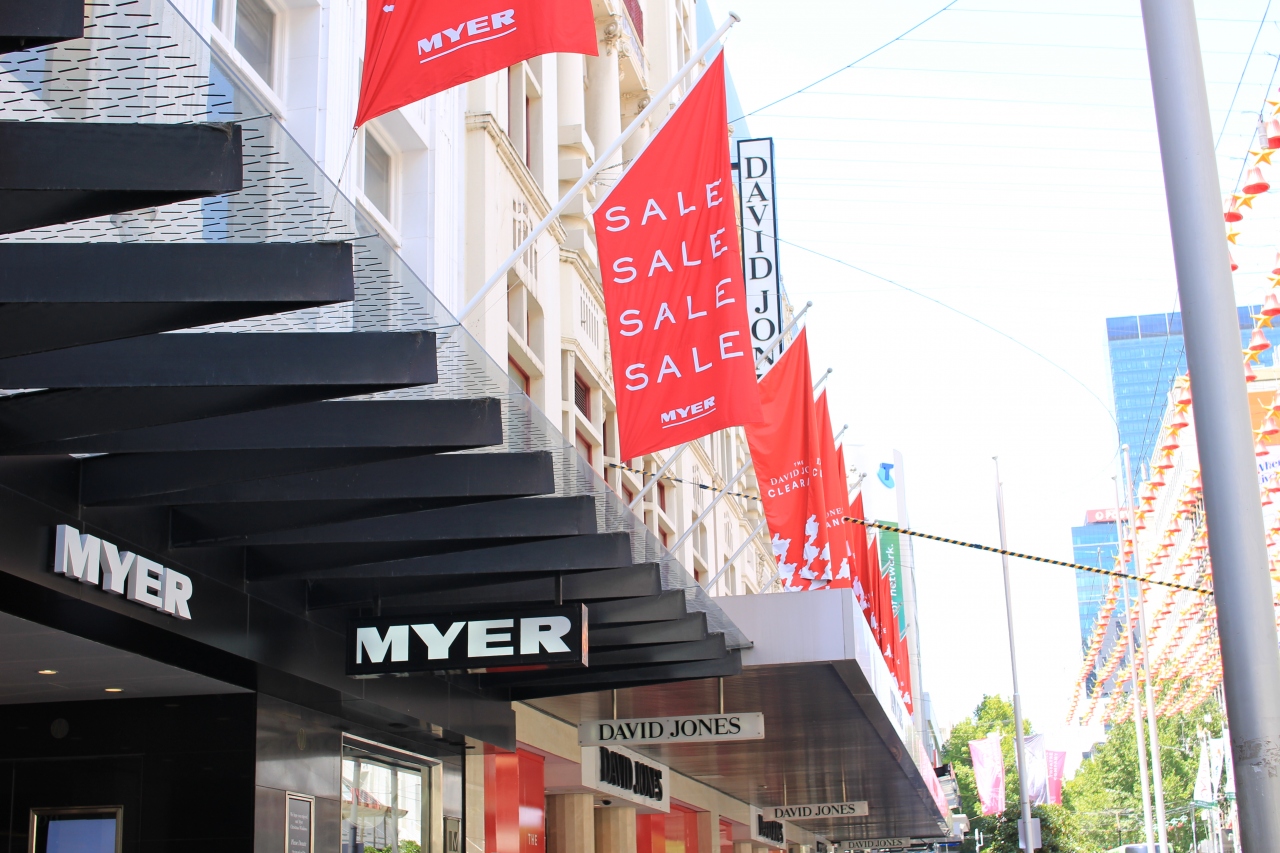 メルボルンの有名デパートです。もう一軒の有名デパート、「DAVID JONES」の隣にあります。化粧品売り場はとても広くてブランドも充実しており、品揃え良いです。